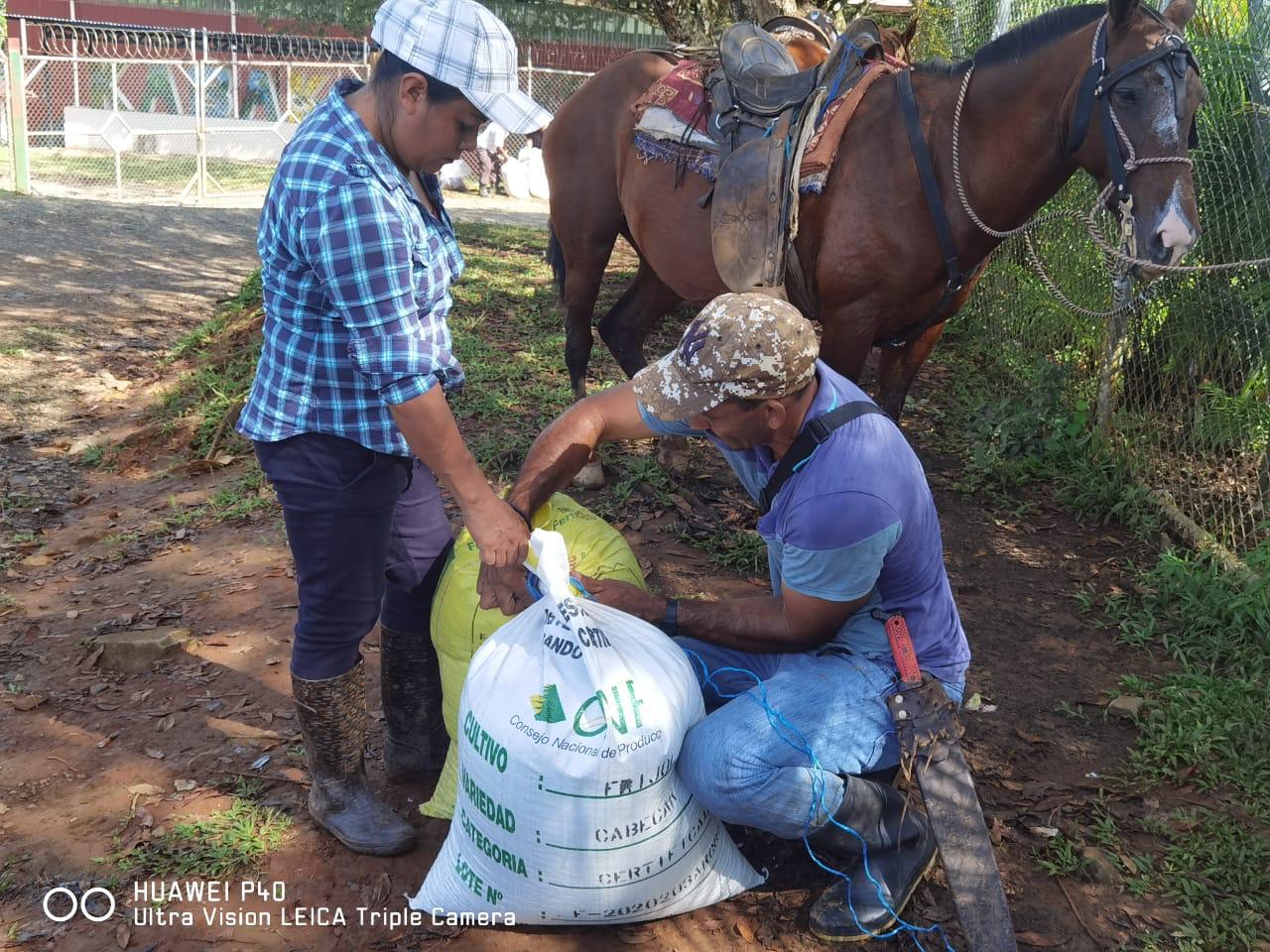 Con el apoyo del CNP, la Oficina Nacional de Semillas distribuyeron el pasado 21 y 22 de octubre, veintiún quintales de semilla certificada de frijol del Programa de Reproducción de Semilla del CNP, entre 17 productores de frijol de las comunidades de Salitre, Térraba y Cabagra. La semilla fue comprada con fondos del IMAS, y apoyó también en su distribución personal de Fundecooperación. Fotografías: CNP y Arturo Valenciano/Fundecooperación