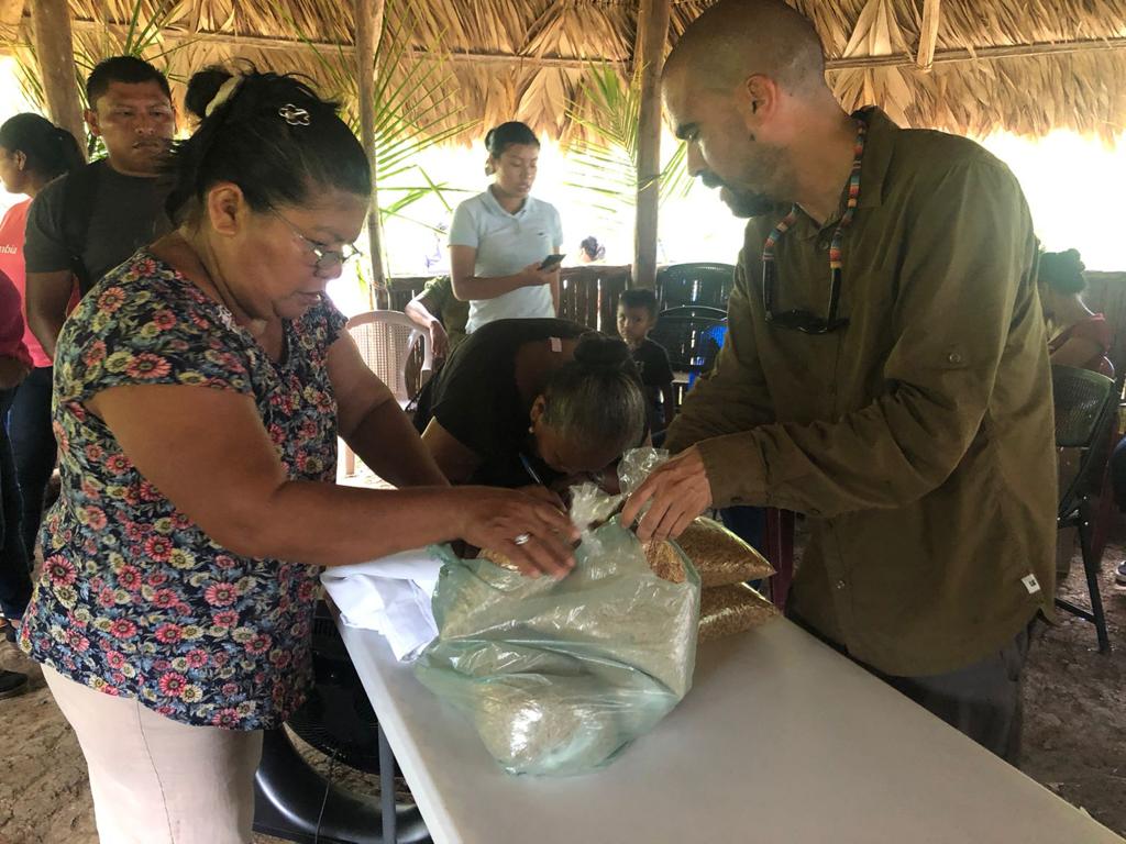 Entrega de semilla de arroces acriollado a organizaciones ACOMUITA y Kábata Könana.